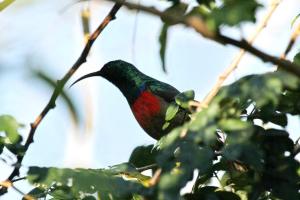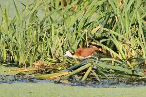 We started our walk along the top of the ponds then went down to the river. It was difficult to see into the ponds and impossible to walk between them – too overgrown. Along the way we had views of Dark-capped Yellow Warbler, Fan-tailed Widowbird, Southern Red Bishop, Common Waxbill and both Diderick’s and Klaas’s Cuckoos were calling.