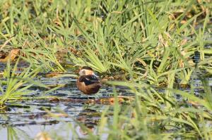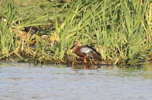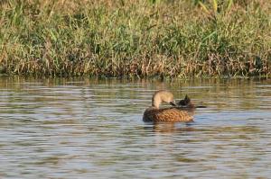 Then walking back along the road by the canals we had further excitement. Among the Red-billed Teals and other waterbirds, Decklan spotted a bird which he found difficult to identify.