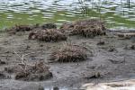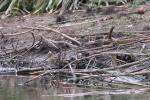 The lowest Eston mill pond was virtually dry. The large pond above it had one stretch of water close by next to the dam wall but most of the pond is covered in vegetation with the odd open area to view waterbirds from afar.