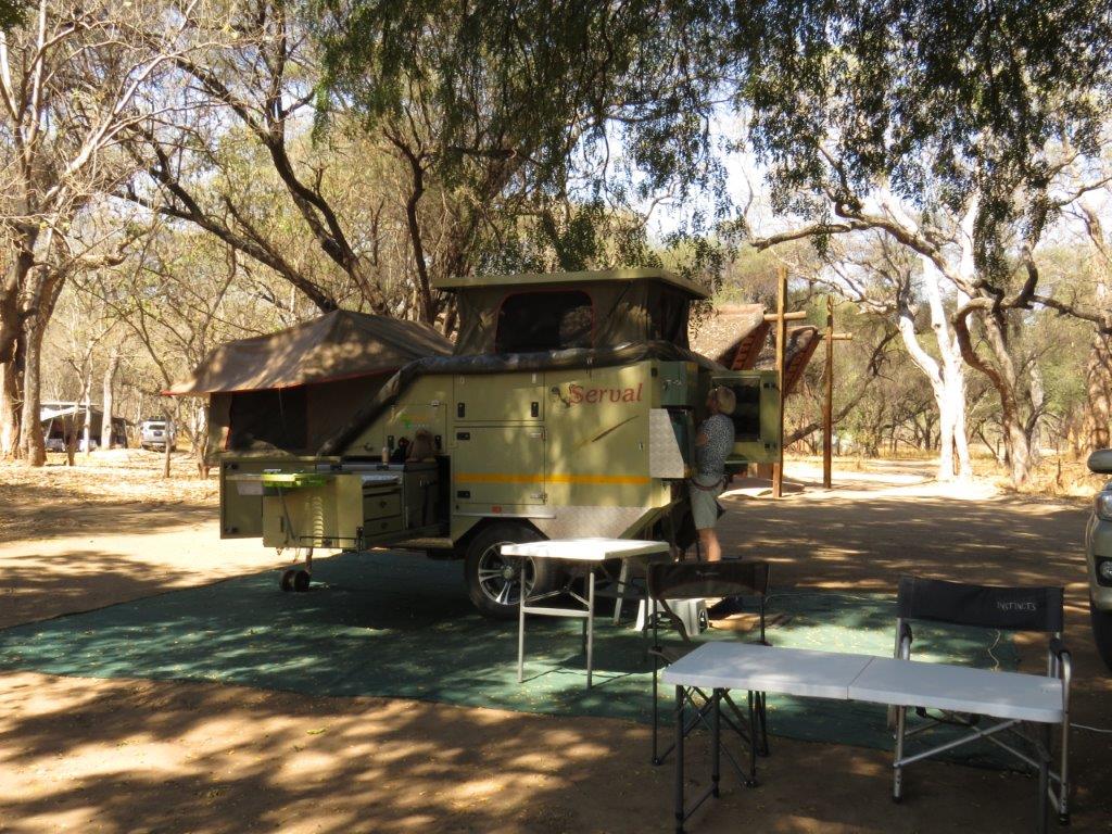 We had stayed at Ratho many years ago so it was interesting to see if it had changed much. At that time they had a 4×4 bush camp atop of a hill with a scenic loo overlooking the valley below. This has now gone, the area having been sold. However a new 4×4 camp has been established in the area next to the river.