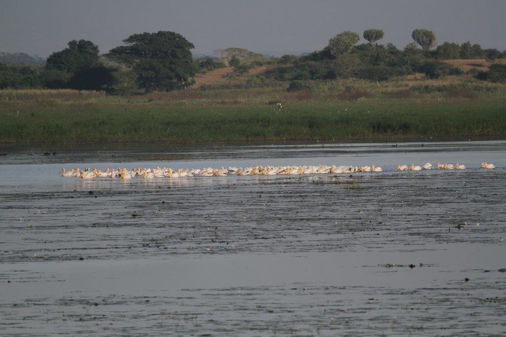 During the short stay there we recorded 34 species seen from the roadside. There were over 100 Great White Pelicans masterfully fishing together on left side of the causeway as you head towards Mkuze.