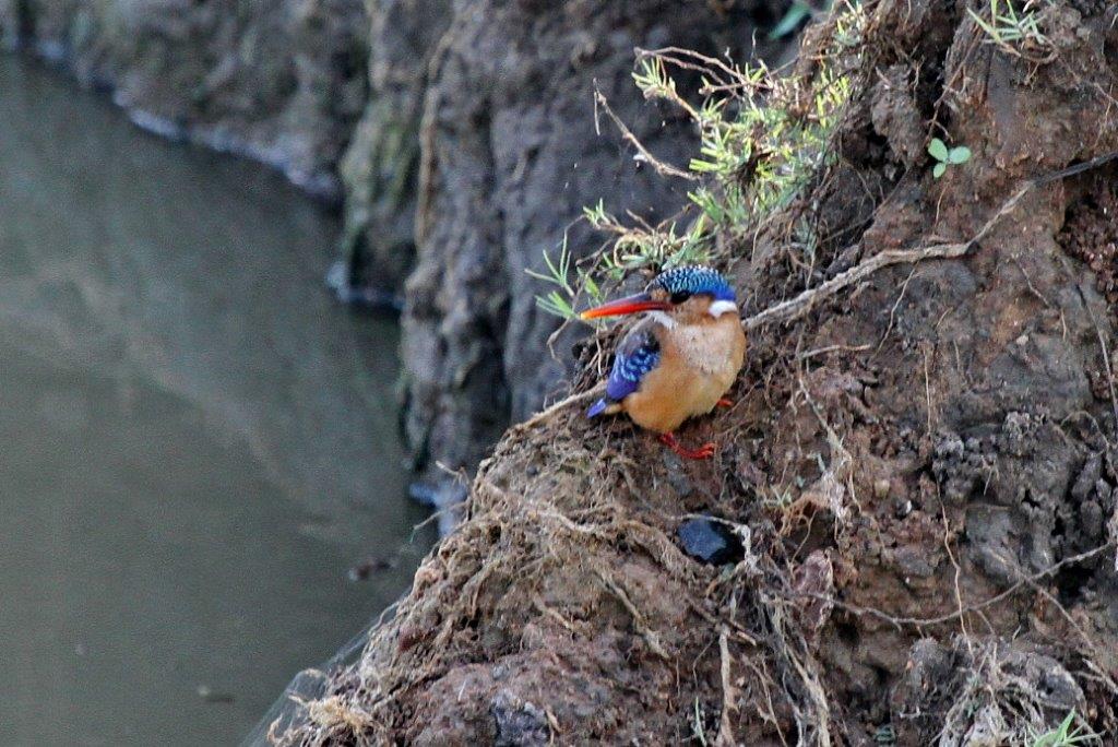 Then there was an obliging Malachite Kingfisher beside the road openly sunning on the bank. On return home later in the day he was still there.