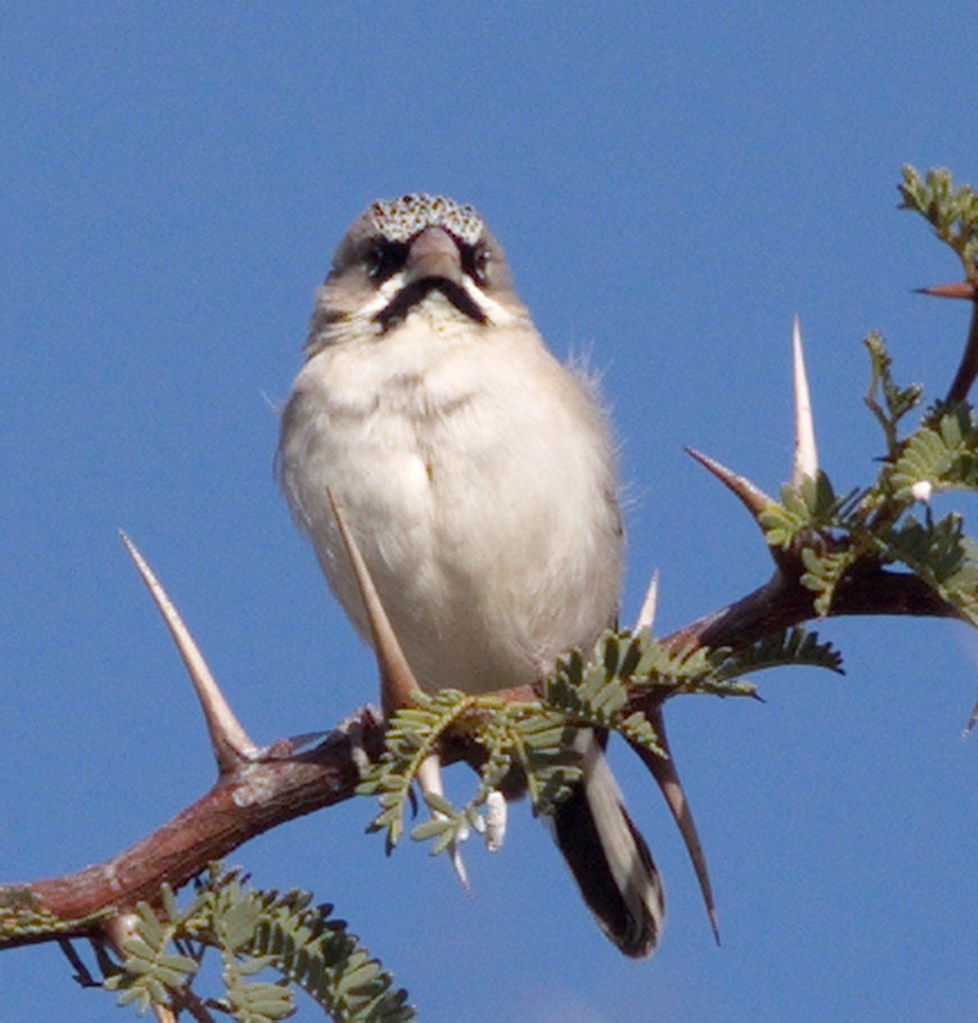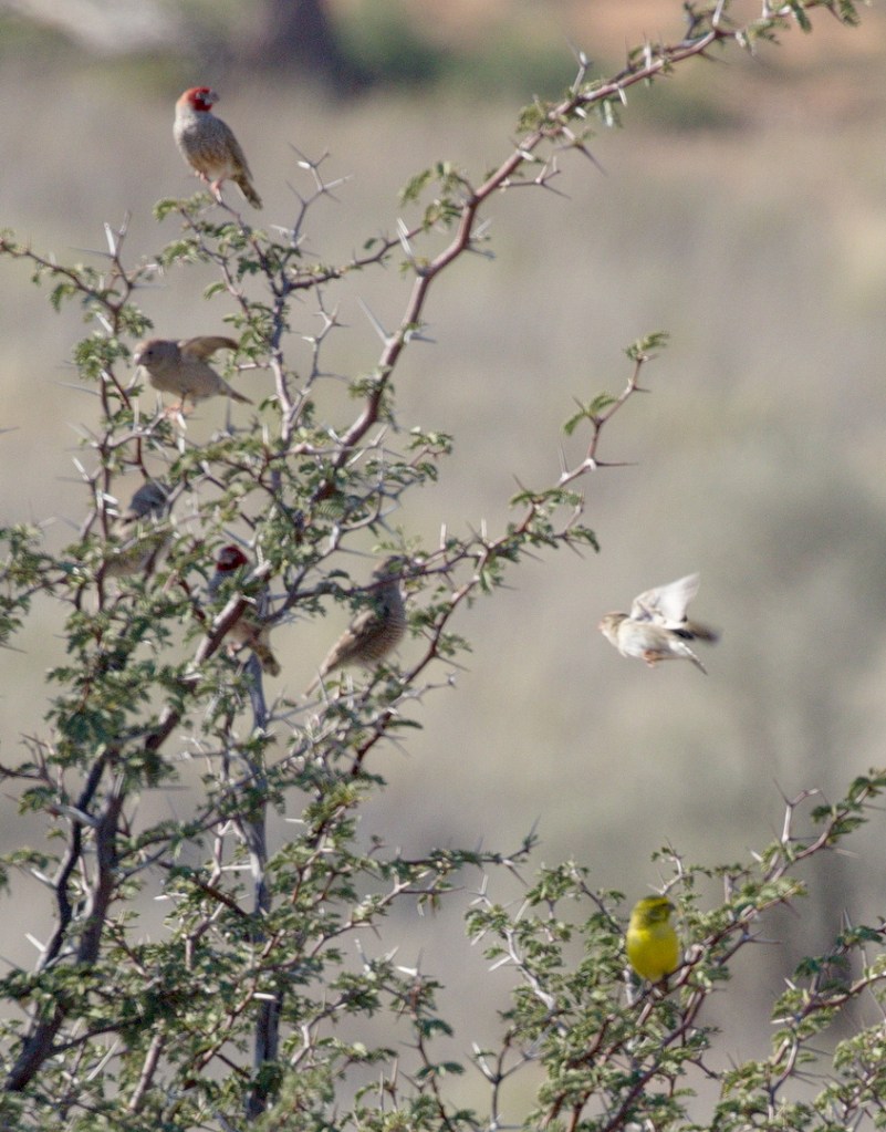 Of course there were other species which we enjoyed – Spike-heeled and Karoo Long-billed Larks, Karoo Korhaan, Double-banded Courser, Pririt Batis, White-throated Canaries, Namaqua Sandgrouse, white-backed Mousebirds, Yellow Canaries and Cape Sparrows to name a few.