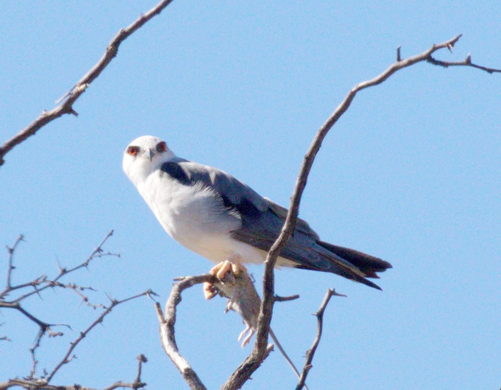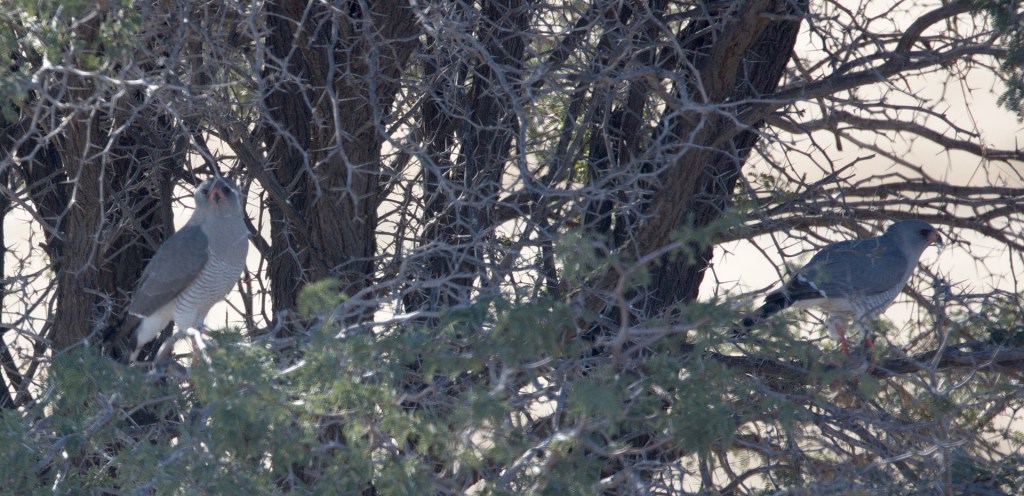 The Gabar Goshawks waited patiently for the Lanners to rest before they had a go. They were in the tree directly across from us.