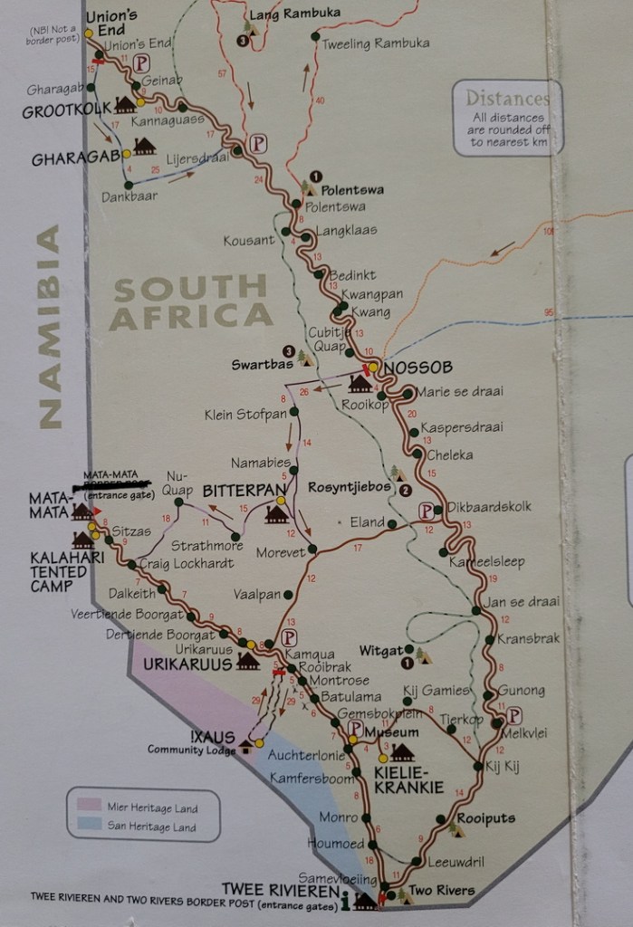 Showing both the South African and Botswanan side (Mabuasehube) of the park.