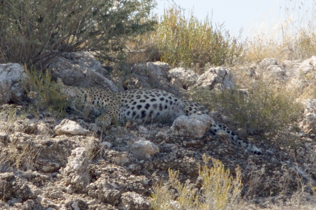 During our travels in the area we came across a few snakes on the road, a lion having a drink and a male leopard languishing below an overhang on a rocky hillside.