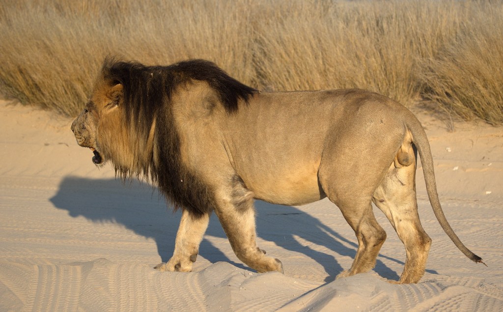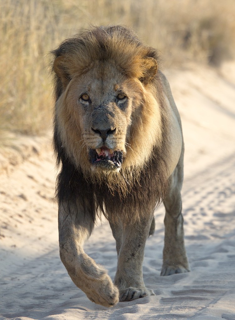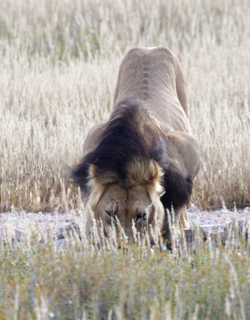On our previous visit we had playful lions passing through our camp. This time they were nearby too. And another large male staked his claim on the main road to Nossob.