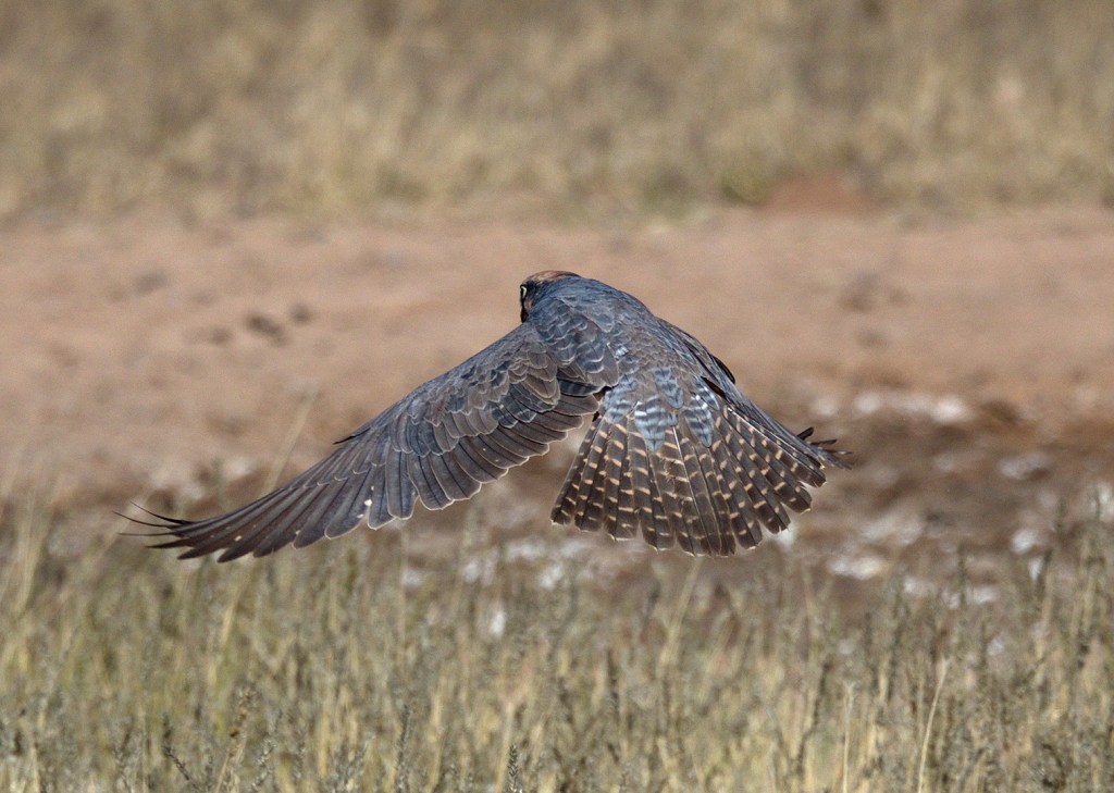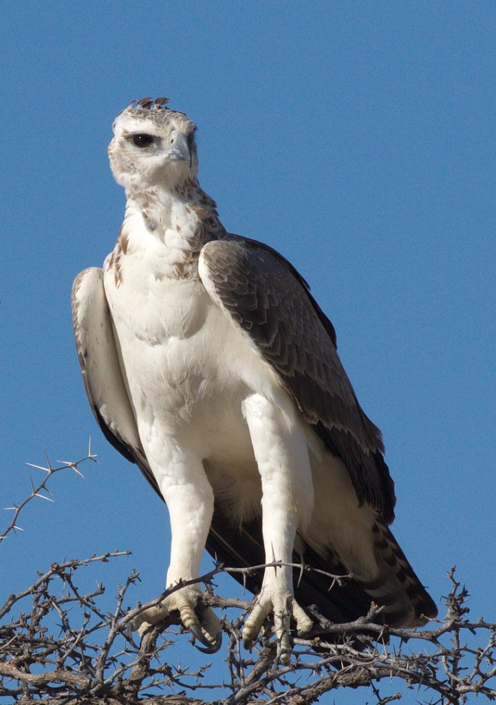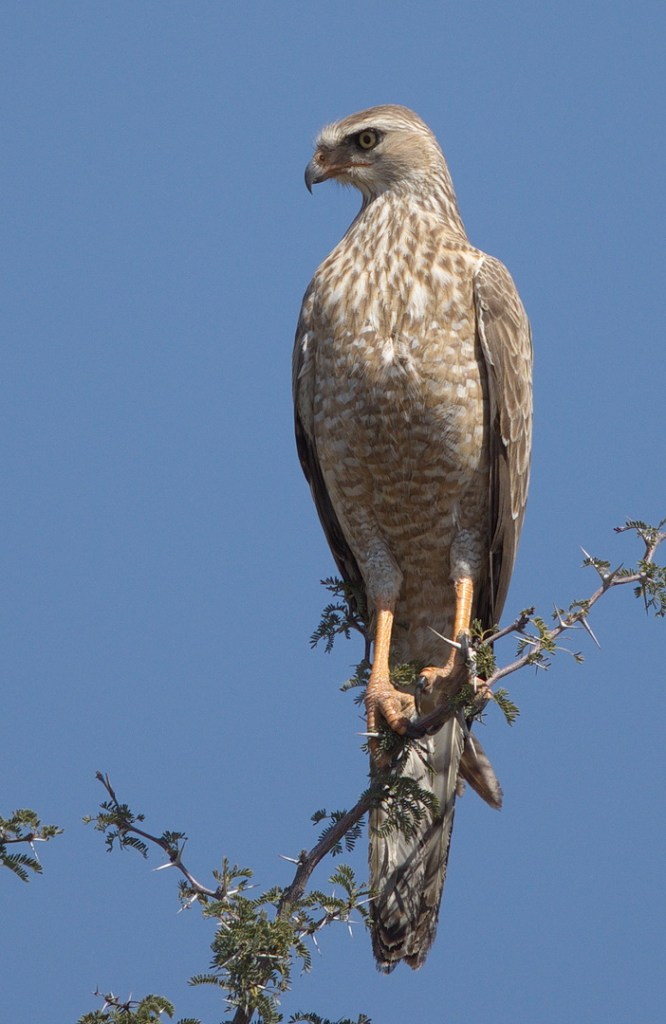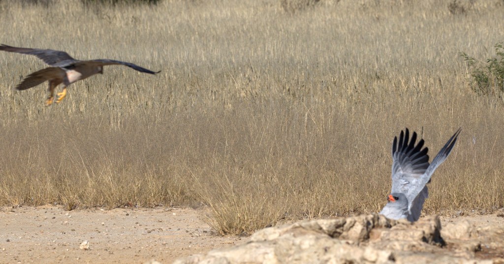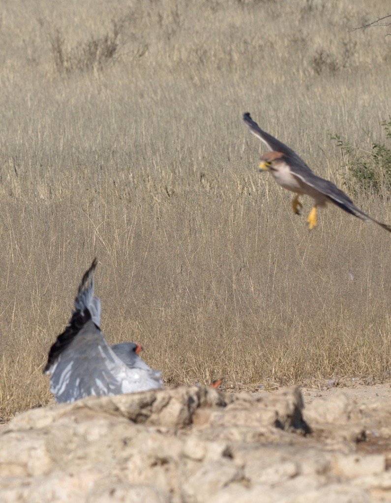 And animosity between raptors for no apparent reason. As this Lanner Falcon attacks a Pale Chanting Goshawk.