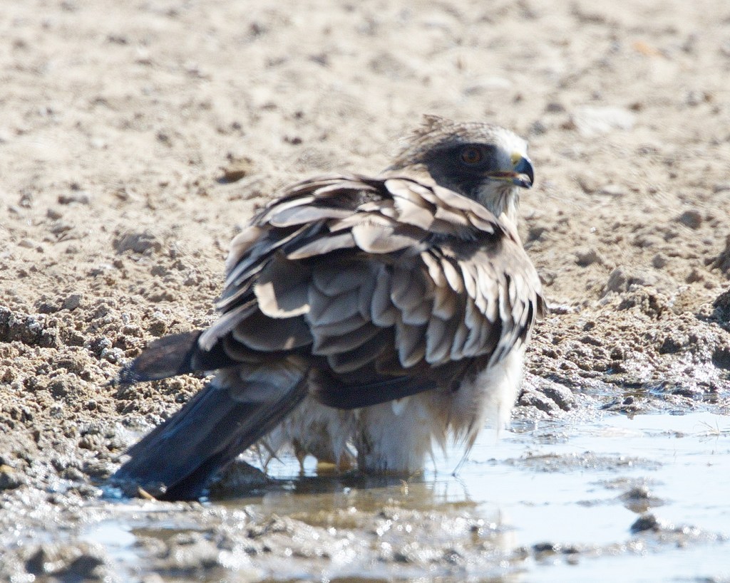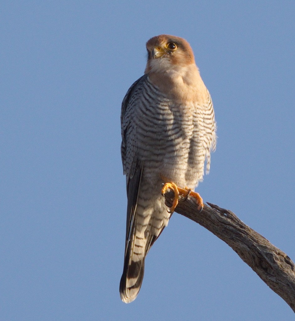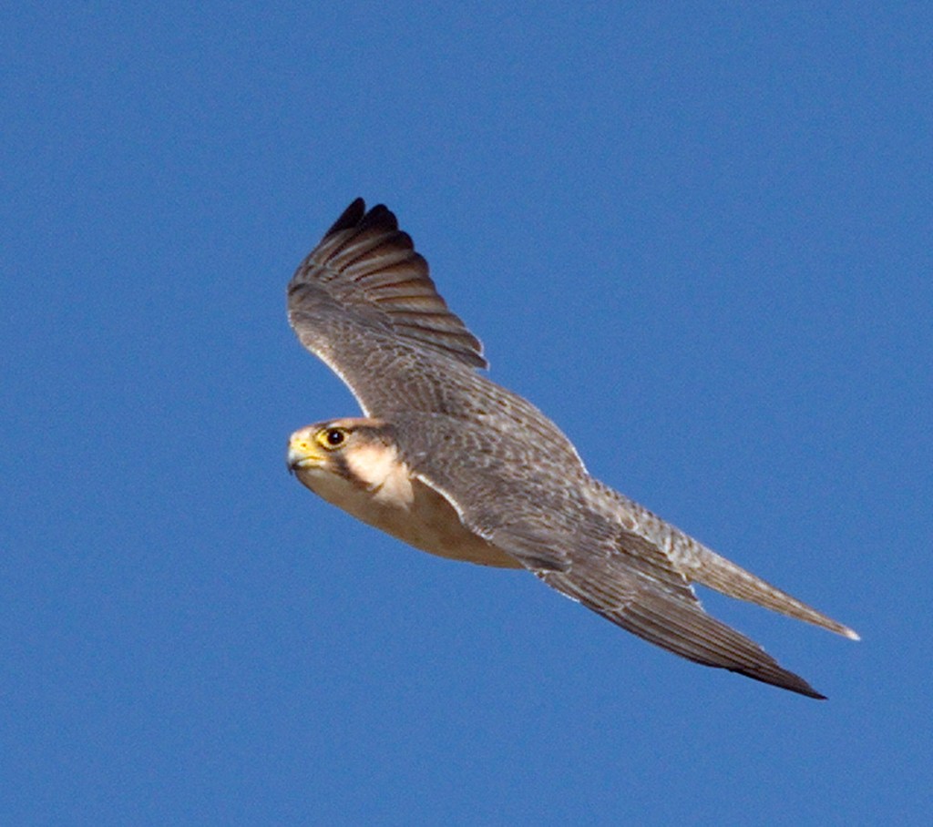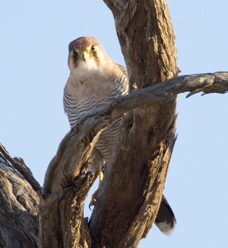 And animosity between raptors for no apparent reason. As this Lanner Falcon attacks a Pale Chanting Goshawk.