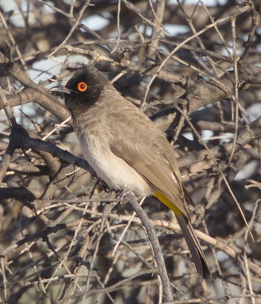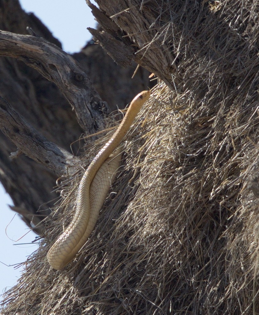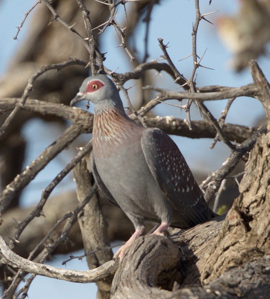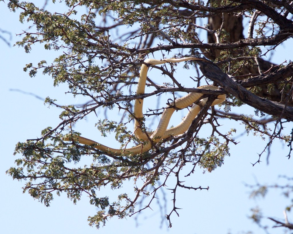 There is a set of thorn trees immediately after a small waterhole (on the right) not far back towards the main gate from Rooiputs. Over the course of the three weeks that we were in the park we always saw 5 White-faced Owls well hidden in that set of trees. They were not only hard to find but they were almost impossible to photograph.