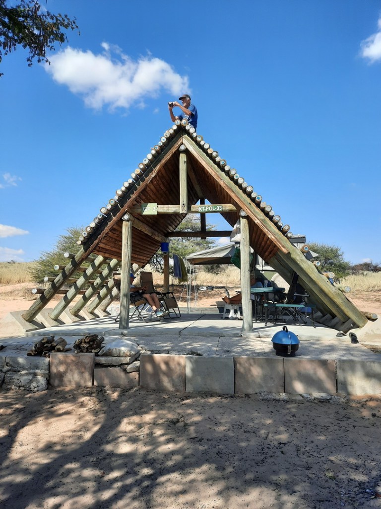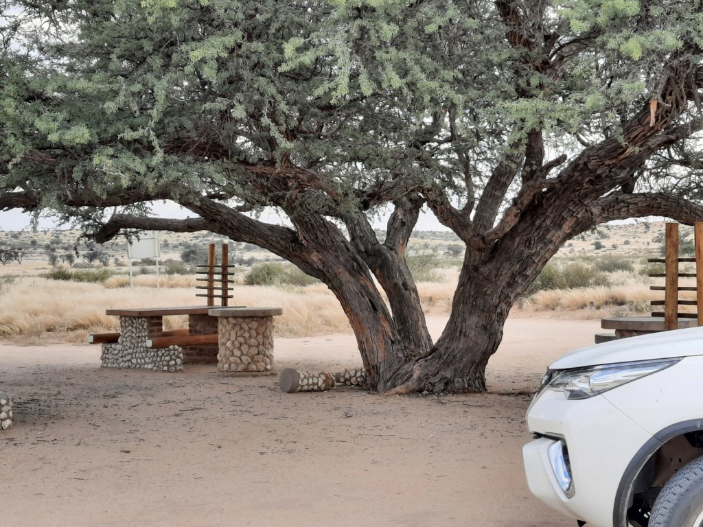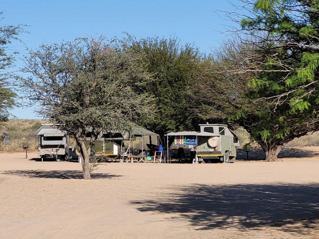 Polentswa campsite is only an hour’s drive north of Nossob. There are only 3 campsites – each taking a maximum of 3 couples. It is located in the Botswana side of the Park and each site has a separate shower, long drop but no water nor power. Take rubbish bags.