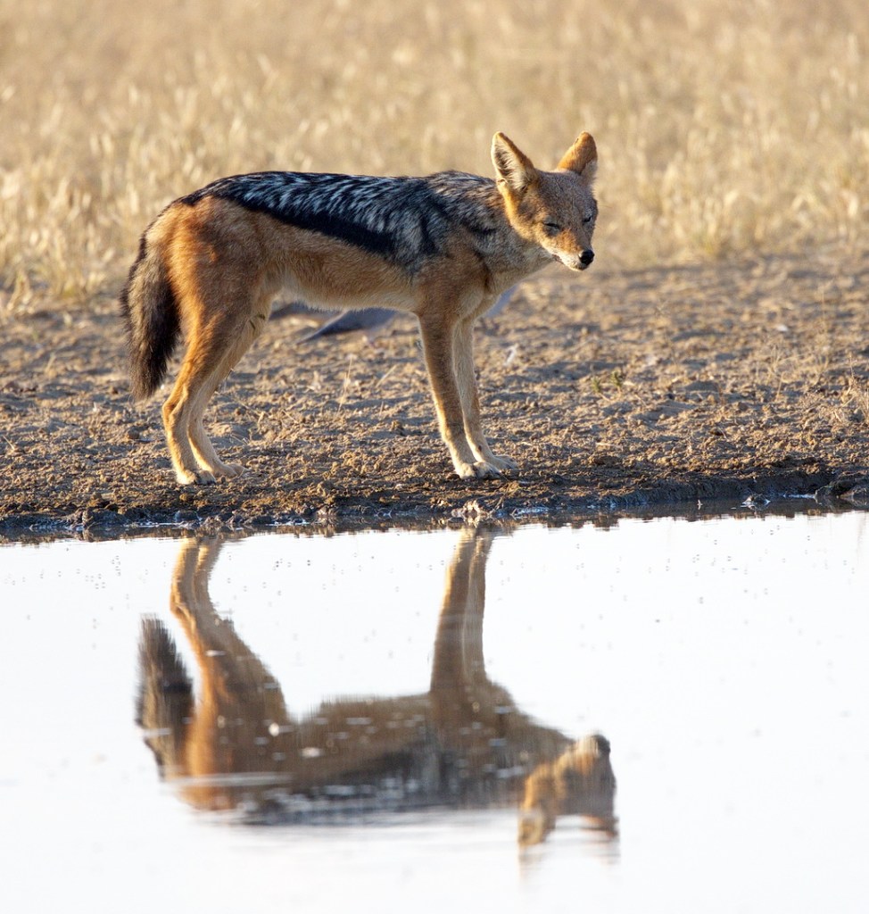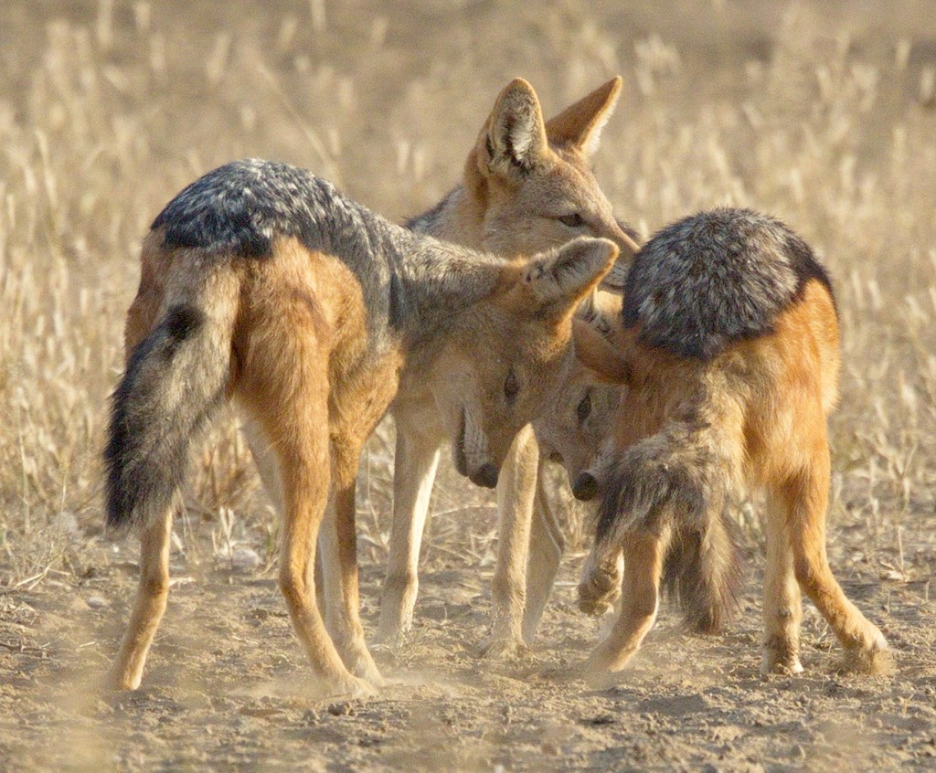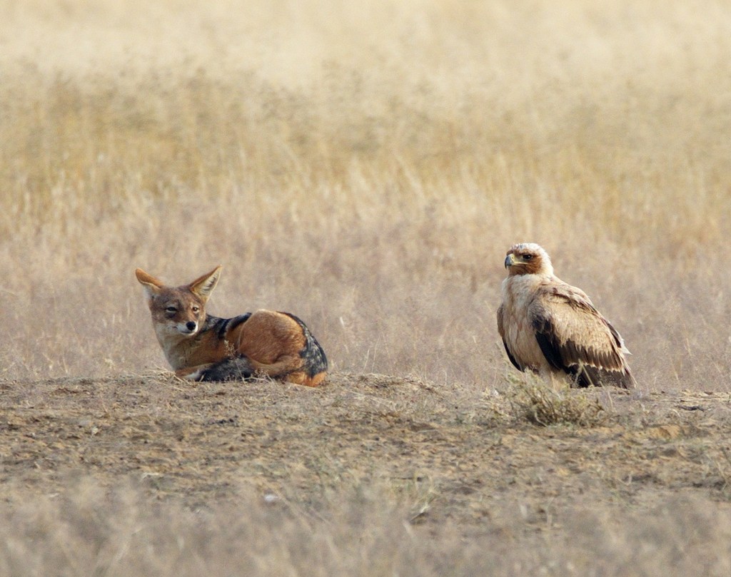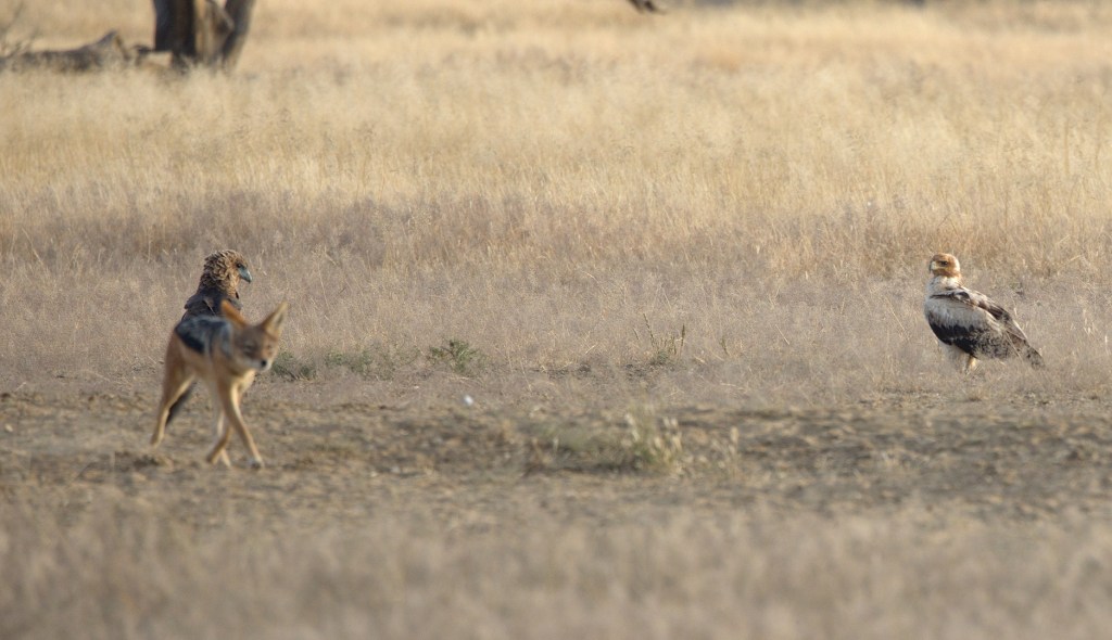 Here are some photos of Black-backed Jackals and their interaction with each other. And they are very successful at catching Sandgrouse especially compared to the antics of the Lanner falcons. Having caught a bird one Jackal would come very close to the car and scoff down its meal.