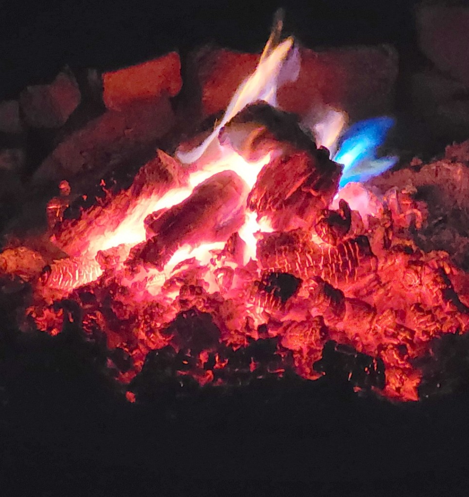 And of course during our final fire the flames took on their extraordinary colours again. Arthur and Rodney continued their speculation until I put them out of their misery. I handed them a packet each of Mystical Fire which I had sneaked into the fires on several occasions on the pretext of adding rubbish to be burnt.