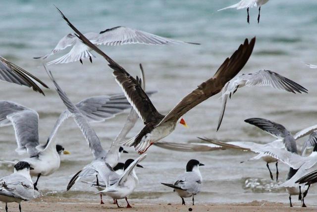 From the shoreline, we watched literally hundreds (and I mean hundreds) of White-breasted Cormorants fishing together. Herding the fish towards the shore. Quite an amazing sight to watch so many fishing together in a leap-frog action.