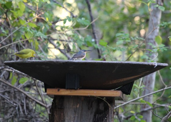 Yellow White-eye and Grey Sunbird, Ilala Palm